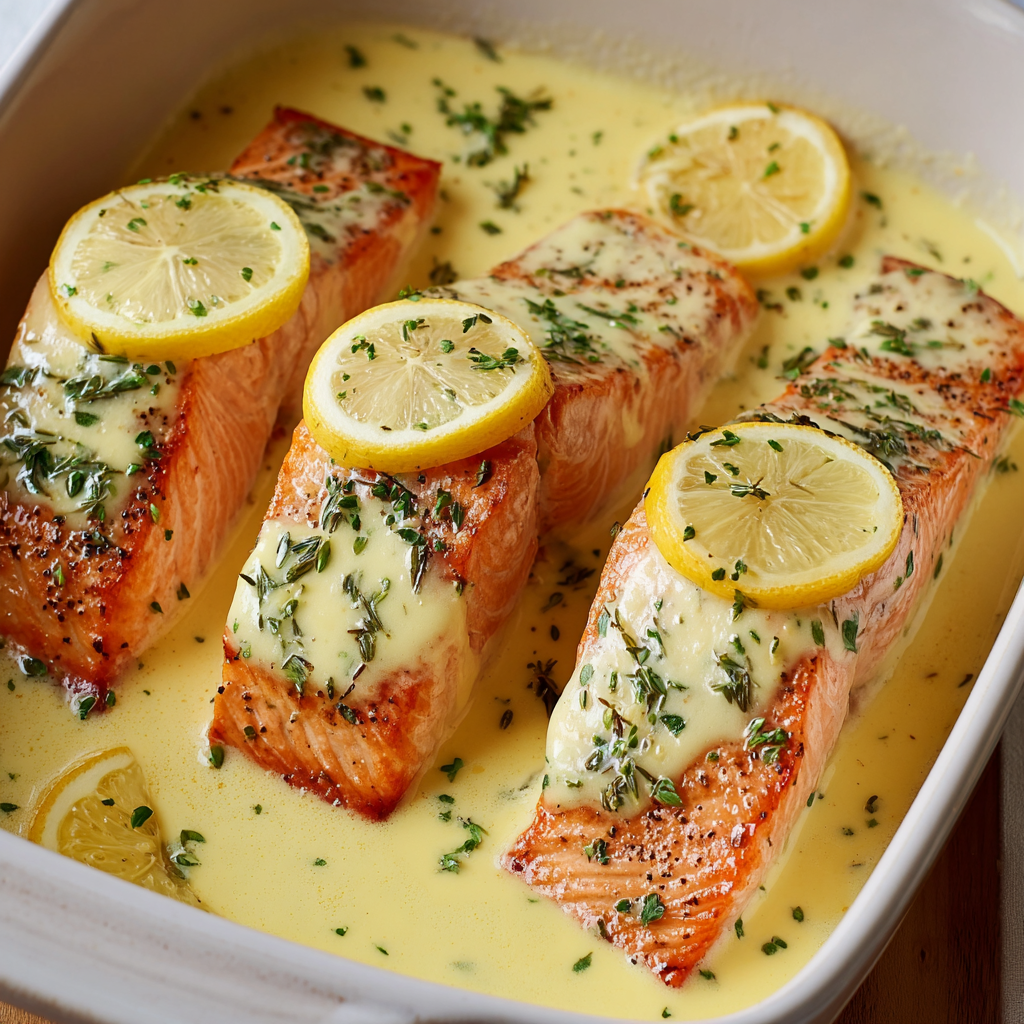Introduction Imagine a dinner that feels elegant without being fussy — flaky, tender salmon baked to perfection, drenched in a silky lemon-butter cream sauce that’s both rich and bright. That’s …