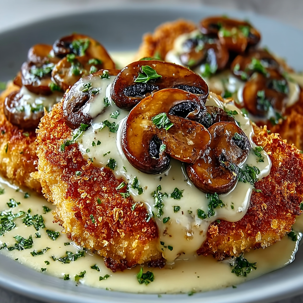 Golden Crispy Chicken with Parmesan Mushroom Sauce