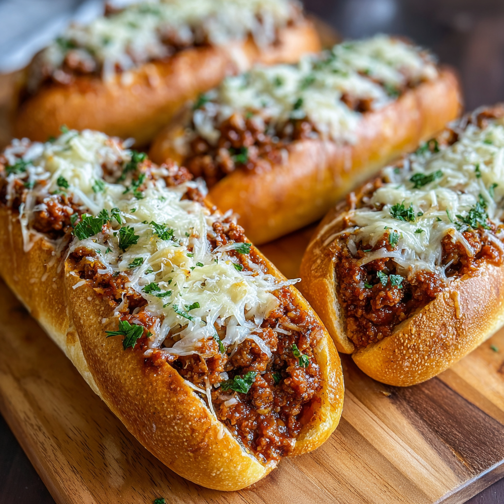 Wyjmij opieczone pieczywo z piekarnika. Na każdą połówkę nałóż hojną porcję farszu sloppy joe. Posyp obficie tartą mozzarellą i chedarem. Wstaw ponownie do piekarnika na kolejne 5-7 minut. Ser powinien się całkowicie roztopić, tworząc pięknie ciągnącą się, bąbelkującą warstwę.