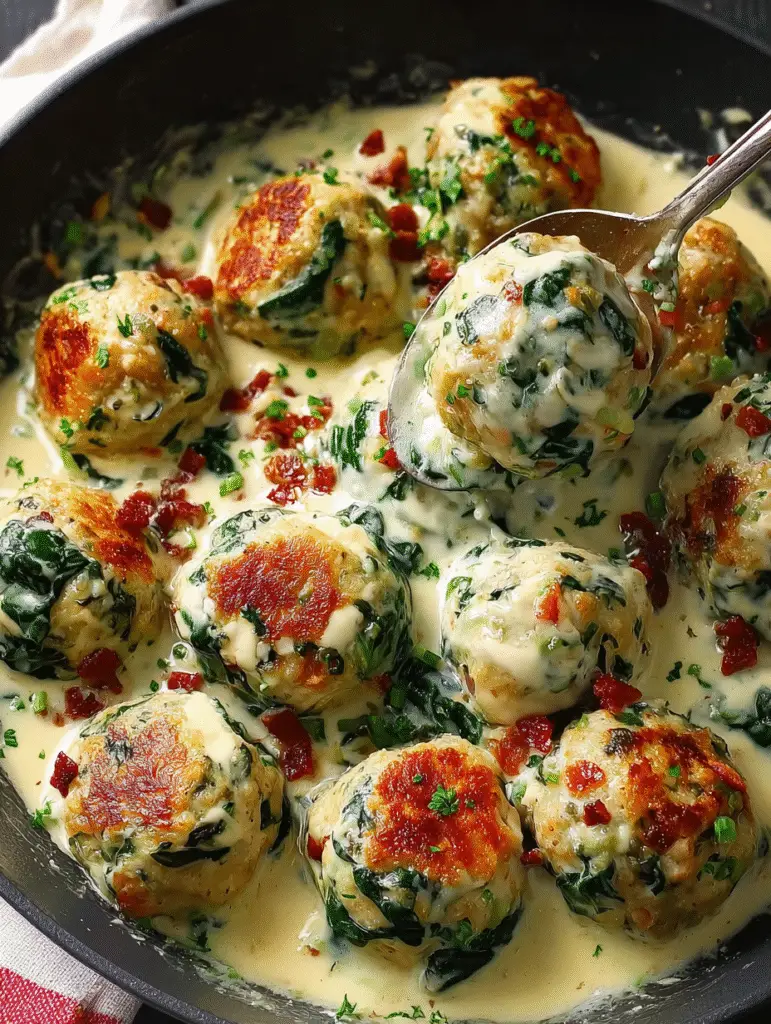 Tender, melt-in-your-mouth chicken meatballs enriched with creamy ricotta meet a velvety spinach Alfredo sauce in a harmony of flavors. Every bite is rich, comforting, and deeply satisfying — the kind of meal that turns an ordinary evening into something special.