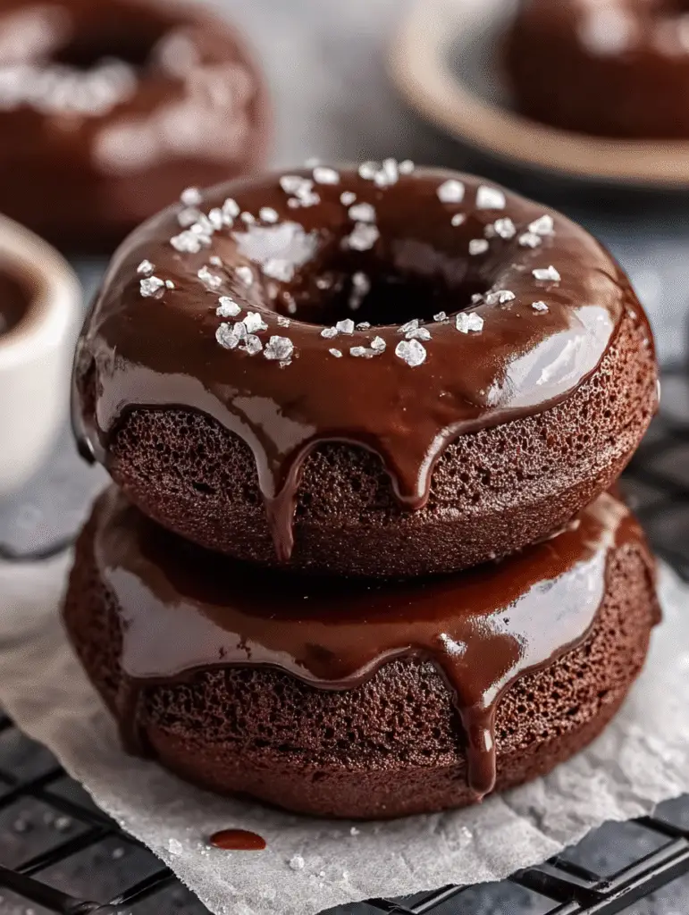 Dip the top of each donut into the chocolate glaze, letting the excess drip off. Return to the rack so the glaze can set. While still wet, you may add sprinkles, chopped nuts, salt flakes or other toppings. Let them rest until the glaze firms a little—about 15‑30 minutes.