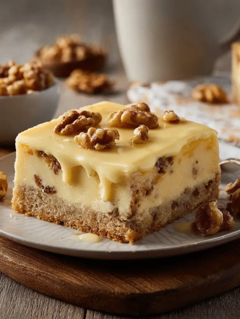 Idealne połączenie tekstur – kruche masło w cieście spotyka się z kremowym budyniem, a wszystko wieńczy chrupiąca warstwa orzechów. Każdy kęs to prawdziwa uczta dla podniebienia.