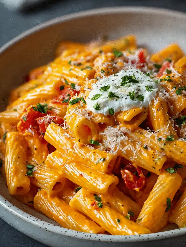 rigatoni pasta bathed in a silky, tomato-cream sauce that’s both rich and bright. In this Creamy Tomato Rigatoni, sweet cherry tomatoes simmer down with garlic and olive oil, then deepen in flavor with a splash of white wine and a spoonful of tomato paste. A swirl of heavy cream transforms the sauce into something decadent and luxurious, while a touch of flour gives it perfect body. Tossed together with tender al dente pasta and finished with fresh parsley and optional Parmesan, this dish feels like a restaurant favorite — yet comes together easily in your own kitchen.