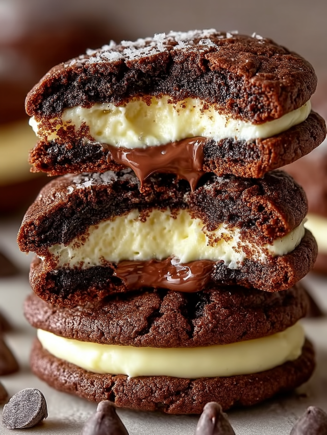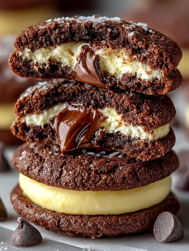 Czekoladowe ciastka z nadzieniem sernikowym to prawdziwa uczta dla zmysłów. Z jednej strony mamy intensywnie czekoladowe ciasto z kawałkami gorzkiej czekolady, z drugiej zaś – aksamitne, kremowe nadzienie sernikowe. Dzięki temu każdy kęs staje się wyjątkowym doświadczeniem kulinarnym, które zadowoli nawet najbardziej wymagających smakoszy.