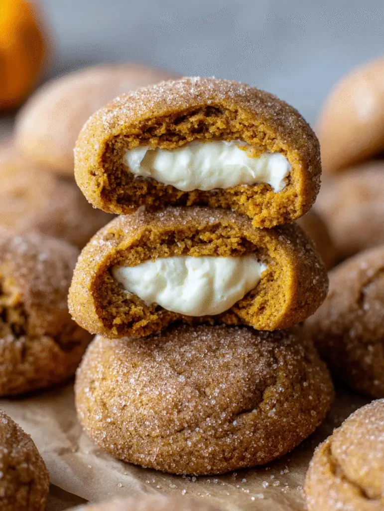 Te ciasteczka to prawdziwy majstersztyk jesiennego pieczenia. Łączą w sobie miękkie, aromatyczne ciasto dyniowe z niespodzianką w postaci kremowego nadzienia sernikowego. Co więcej, obsypane są cukrem z przyprawami dyniowymi, który tworzy delikatną, chrupiącą otoczkę. Brzmi jak marzenie, prawda?