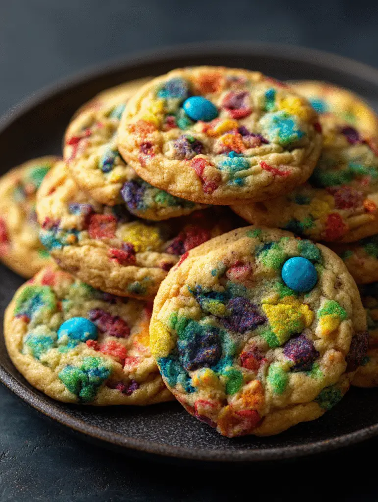 Each time I bake these, the kitchen fills with the buttery aroma of fresh cookies and a faint sweetness of the cereal’s fruity essence. The rainbow specks of cereal bring a playful surprise into every bite. Whether you’re dunking one in a glass of milk, packing them into lunch boxes, or offering them to friends after dinner, they feel like a small celebration — joyful, familiar, and full of delight.