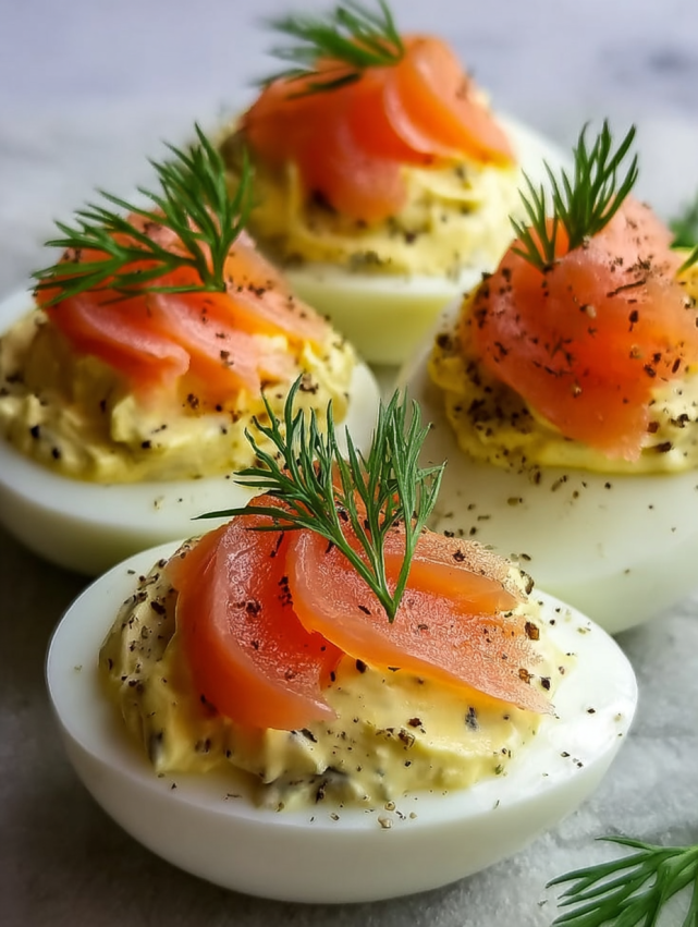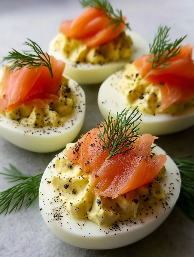 Elegancja na talerzu – Jajka faszerowane wędzonym łososiem wyglądają jak z restauracji. Nawet bez specjalnych umiejętności kulinarnych stworzysz przepiękną przekąskę, która zachwyci każdego.