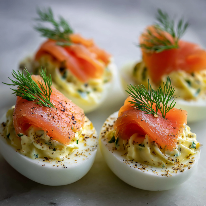 Elegancja na talerzu – Jajka faszerowane wędzonym łososiem wyglądają jak z restauracji. Nawet bez specjalnych umiejętności kulinarnych stworzysz przepiękną przekąskę, która zachwyci każdego.