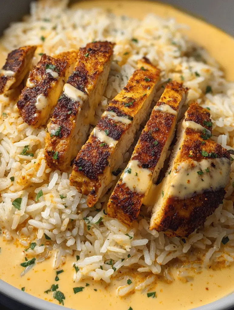 Krok 6: Pokrój usmażony kurczak w cienkie paski i ułóż na wierzchu ryżu. Polej całość zarezerwowanym kremowym sosem tuż przed podaniem, aby danie wyglądało apetycznie i smakowało jeszcze bardziej intensywnie.