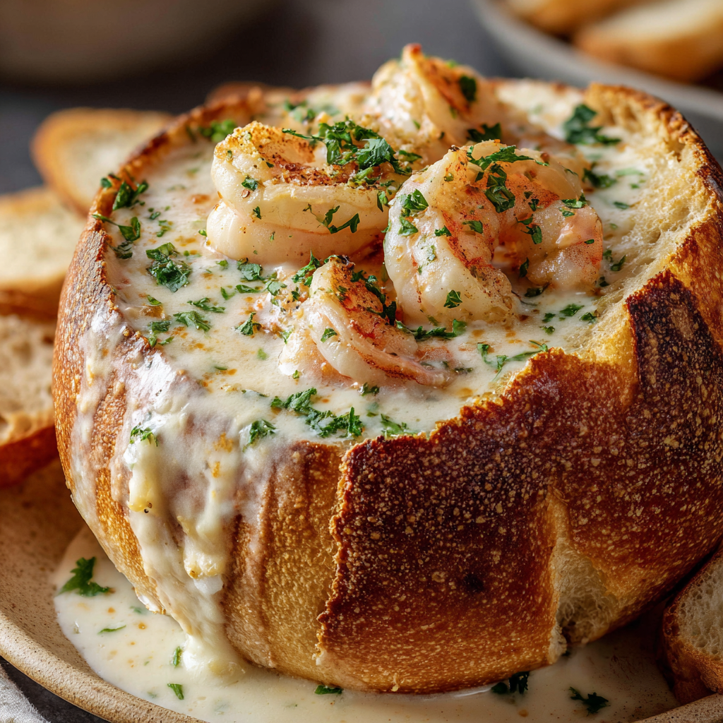 To danie łączy w sobie wszystko, co najlepsze – chrupiący chleb, kremowy sos serowy i delikatne owoce morza. Co więcej, wygląda naprawdę imponująco, mimo że przygotowanie jest zaskakująco proste. Idealne na romantyczną kolację, rodzinne spotkanie czy eleganckie przyjęcie.