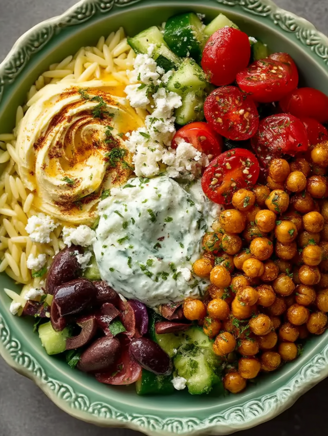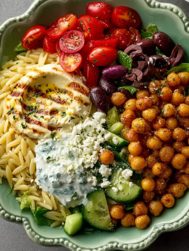 Czy mogę przygotować wersję na ciepło? Absolutnie! Podgrzej orzo i ciecierzycę, a resztę składników dodaj na zimno. To szczególnie przyjemne w chłodniejsze dni.
