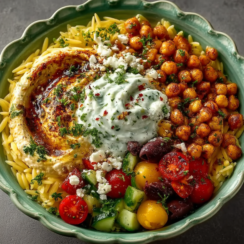 Czy mogę przygotować wersję na ciepło? Absolutnie! Podgrzej orzo i ciecierzycę, a resztę składników dodaj na zimno. To szczególnie przyjemne w chłodniejsze dni.