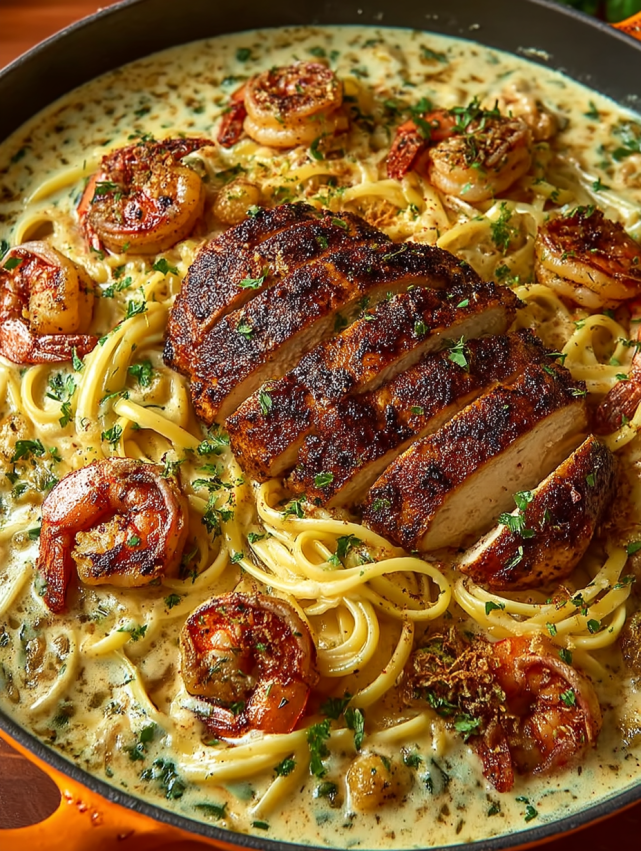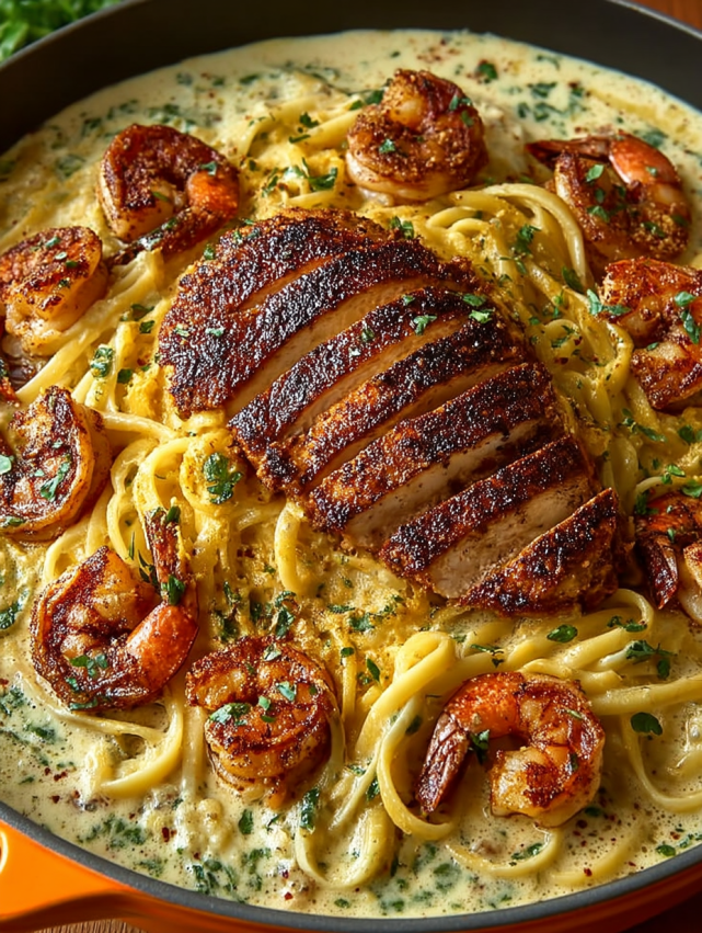 Dzisiejszy przepis to połączenie kremowej elegancji z białkami o różnych charakterach. Krewetki tigrysie wnoszą słodkość morza, podczas gdy kurczak dodaje sycącej substancji. Co więcej, cały przepis można przygotować w niecałą godzinę, co czyni go idealnym wyborem zarówno na kolację w tygodniu, jak i na specjalne okazje.