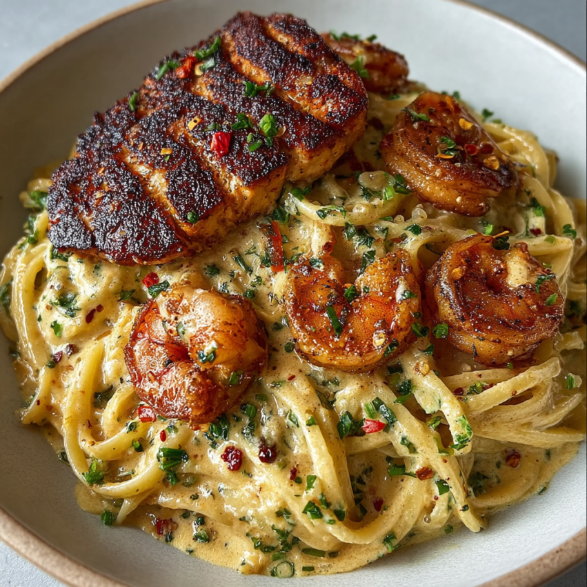Dzisiejszy przepis to połączenie kremowej elegancji z białkami o różnych charakterach. Krewetki tigrysie wnoszą słodkość morza, podczas gdy kurczak dodaje sycącej substancji. Co więcej, cały przepis można przygotować w niecałą godzinę, co czyni go idealnym wyborem zarówno na kolację w tygodniu, jak i na specjalne okazje.