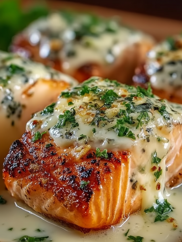 Pieczony Łosoś w Sosie Serowym z Czosnkiem – Przysmak, Który Zachwyci Twoich Gości