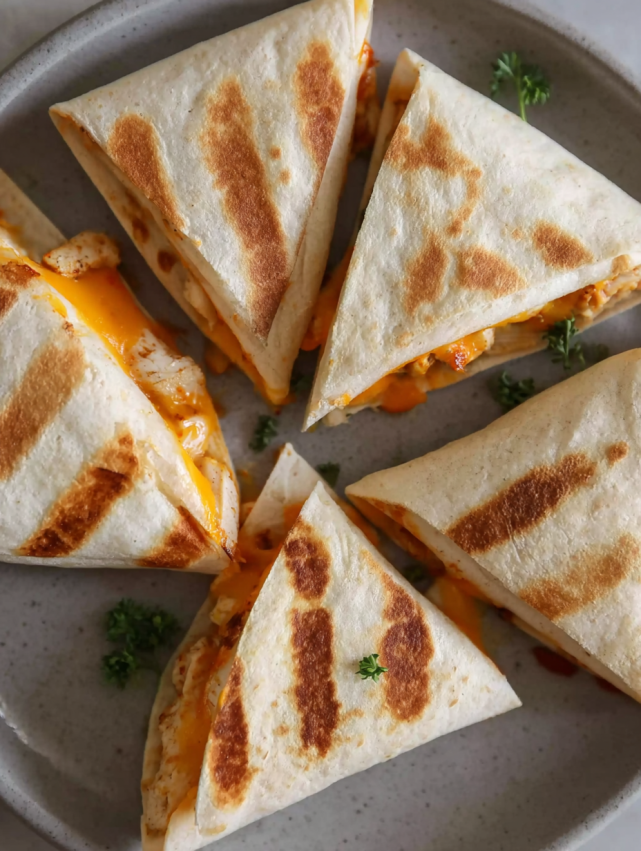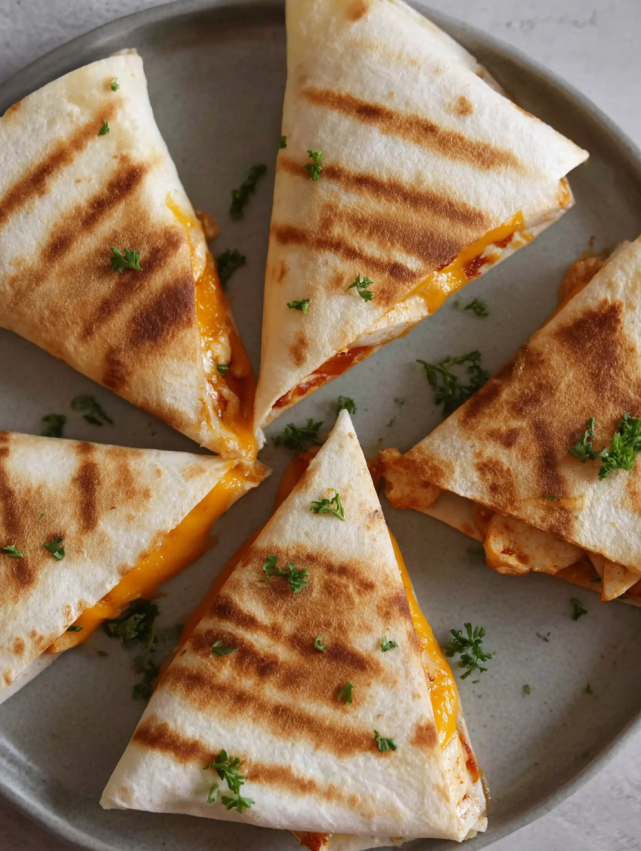 - Grillowanie: Grilluj na suchej, rozgrzanej patelni przez około 2-3 minuty z każdej strony, aż tortilla nabierze złocistego koloru i ser się rozpuści. Alternatywnie możesz użyć opiekacza do kanapek.