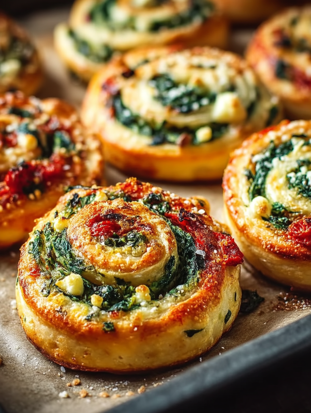 Ślimaczki z ciasta francuskiego ze szpinakiem i fetą