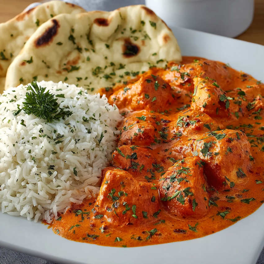 Klasyczne zestawienie – podaj butter chicken z ciepłym, miękkim chlebem naan, który idealnie nadaje się do maczania w kremowym sosie. Możesz też wybrać ryż basmati, który doskonale wchłania aromat sosu.